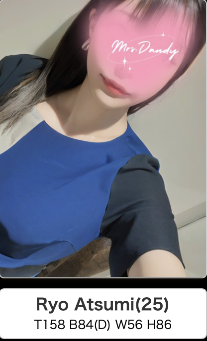 롯퐁기 일대에서 풍속에스떼로 검색했을 때 가장 평판이 좋았던 업소가 바로 <미세스 댄디였다> 미세스라는 말에서도 알 수 있듯이 뭔가 미시 유부녀들을 마사지 세라피스트로 출장파견하는 업소인 것 같은데 솔직히 말하면 난 여기가 그런 컨셉을 가지고 있는 곳인지 몰랐다. 왜냐하면 업소 이름 자체를 <미세스 댄디>가 아니라 <미스 댄디>로 잘못 읽고 예약을 했기 때문이다. 그러고 나서도 한참 동안 이 업소의 컨셉을 파악하지 못했었는데 그 이유는 바로 세라피스트로 온 여자가 엄청 젊고 예뻤기 때문이다. 바로 이 분이시다. 이름은 아츠미 료.