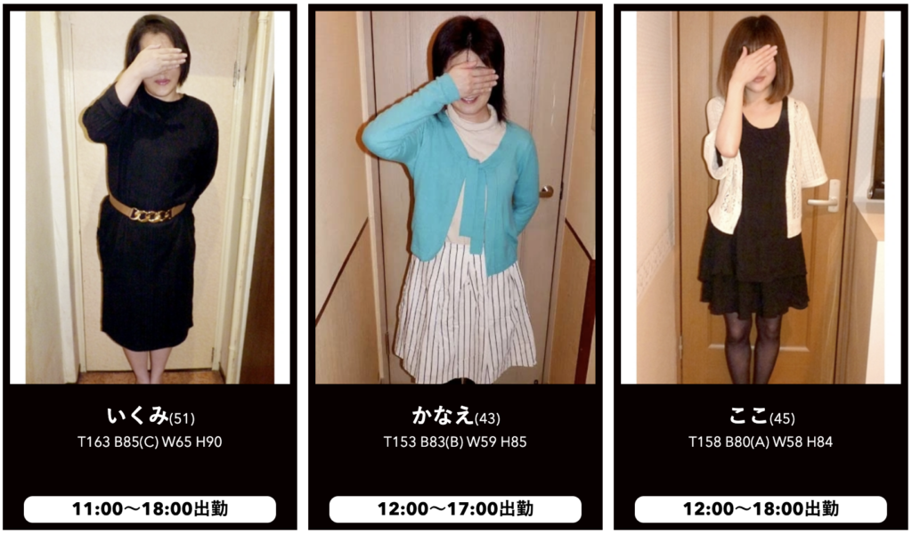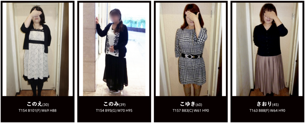 여성들의 외모나 몸매를 보면 알 수 있듯이 상당히 평범하다. 하지만 일본에선 이런 성향을 가진 업소들이 엄청 많고 또 장사도 잘된다. 왜냐하면 길거리에서 흔히 마주칠 수 있는 여자들, 동네에서 지나가다 볼 수 있는 여자들과의 정사, 동네 주민들과 은밀하게 바람을 피우는 듯한 느낌. 그런 느낌적인 느낌에 로망을 가진 남자들이 의외로 많기 때문이다. 나 역시 아줌마 전문 업소를 찾을 때면 그런 느낌을 원할 때니까 남자들이라면 누구나 마음 한켠에 그런 욕망이 숨어 있는게 아닌가 싶다.